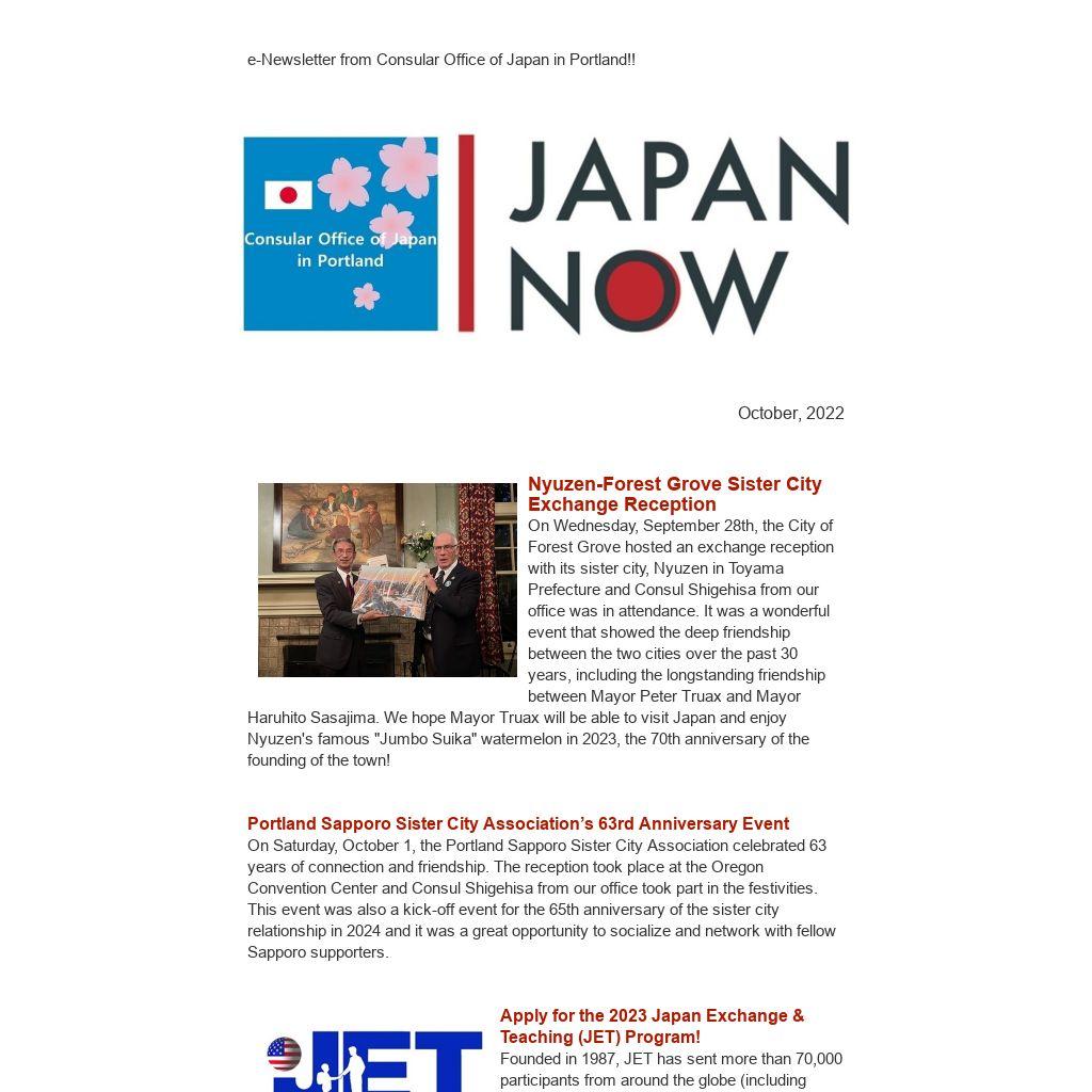 e-Newsletter from Consular Office of Japan in Portland!!