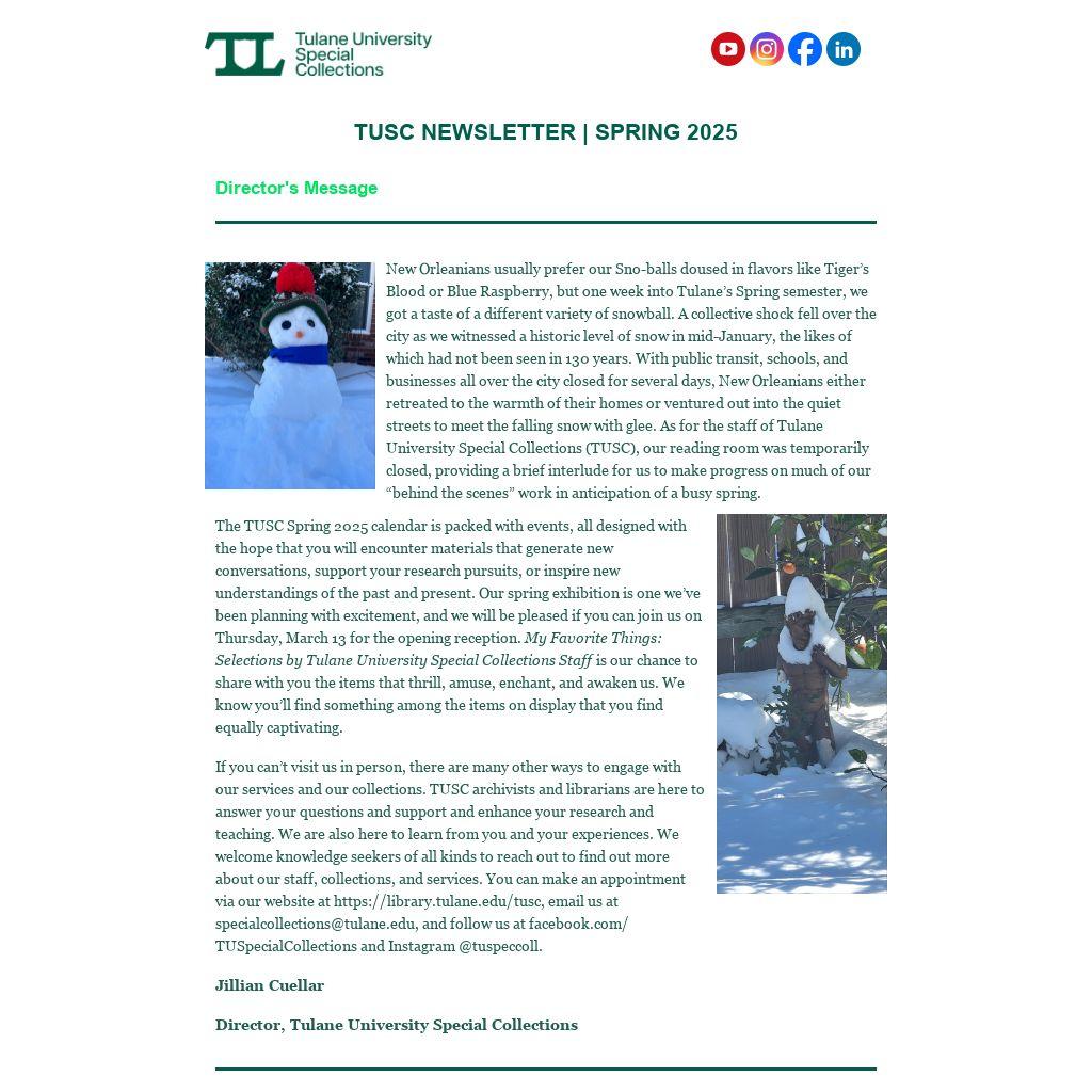 TUSC NEWSLETTER | SPRING 2025