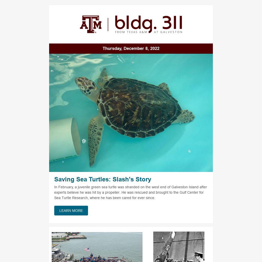 In February, a juvenile green sea turtle was stranded on the west end of Galveston Island after experts believe he was hit by a propeller. He was rescued and brought to the Gulf Center for Sea Turtle Research, where he has been cared for ever since.