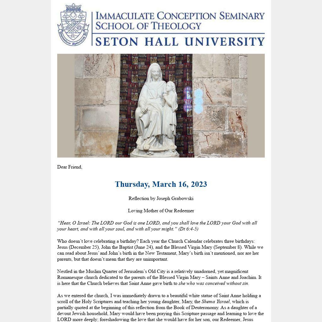 As we continue through this period of Lent, let us emulate the Blessed Virgin Mary. Like her, we are called to love Jesus as she loved him and to weep as she did for the sins that condemned Jesus to death so that we may be redeemed by His Blood.