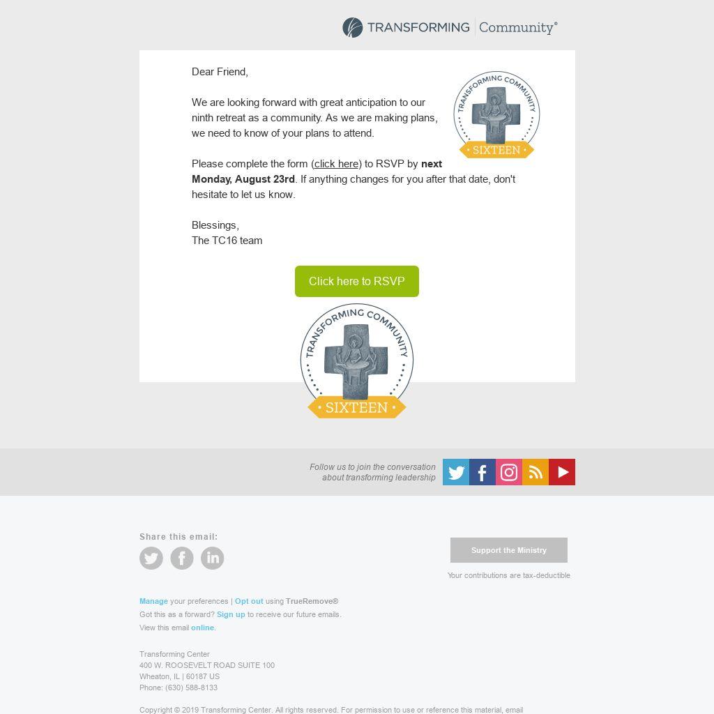 We are looking forward with great anticipation to our ninth retreat as a community. As we are making plans, we need to know of your plans to attend.