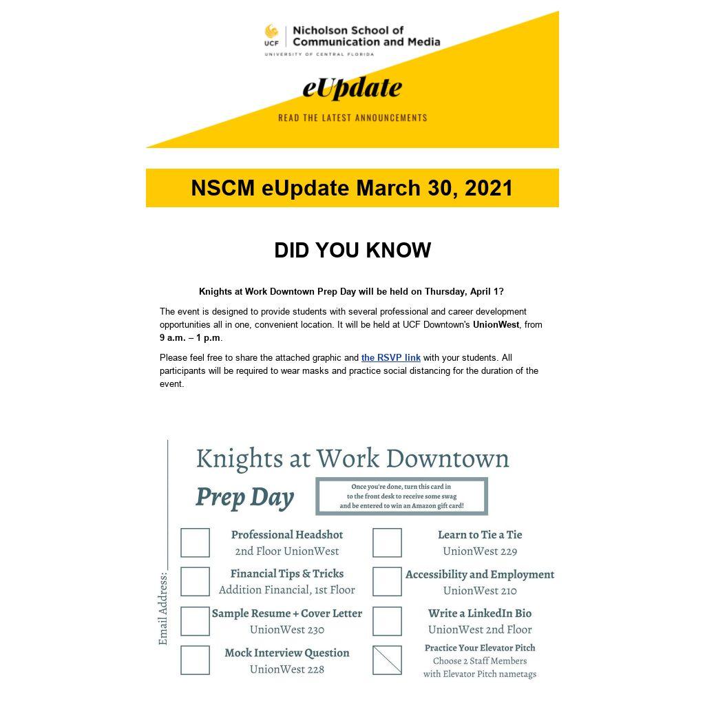 Knights at Work Downtown Prep Day will be held on Thursday, April 1?