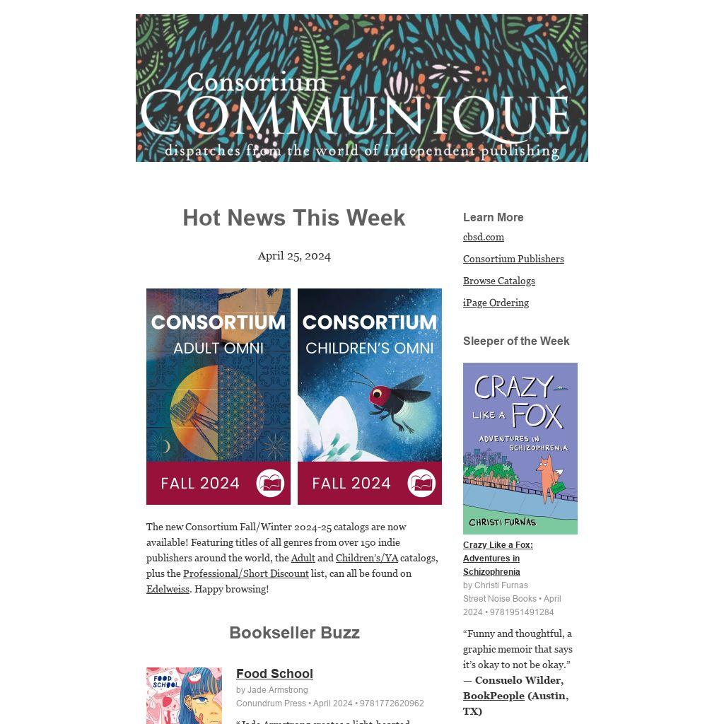 | The new Consortium Fall/Winter 2024-25 catalogs are now available! Featuring titles of all genres from over 150 indie publishers around the world, the Adult and Children’s/YA catalogs, plus the Professional/Short Discount list, can all be found on Edelweiss. Happy browsing!