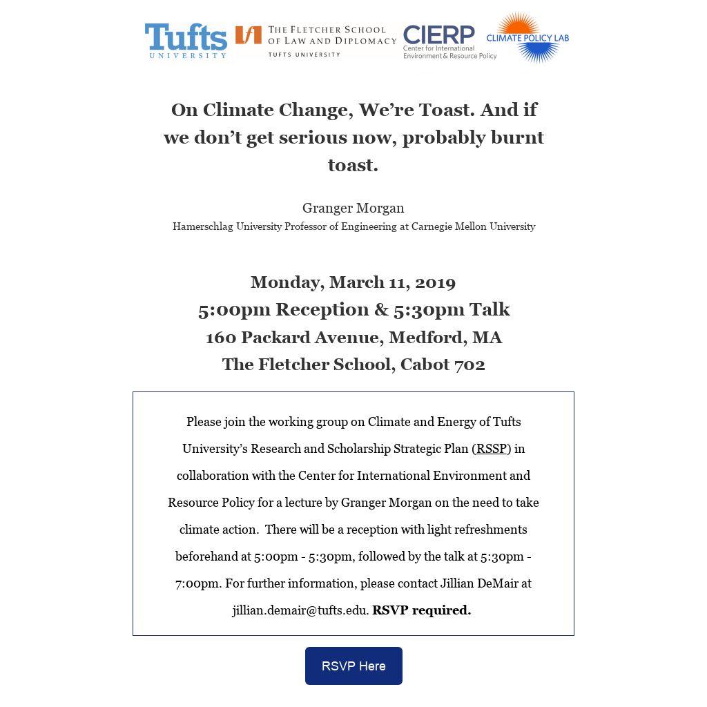 Granger Morgan is the Hamerschlag University Professor of Engineering at Carnegie Mellon University. He holds appointments in three academic units: the Department of Engineering and Public Policy; the Department of Electrical and Computer Engineering; and the H. John Heinz III College. His research addresses problems in science, technology and public policy with a particular focus on energy, electric power, environmental systems, climate change, the adoption of new technologies, and risk analysis. Much of his work has involved the development and demonstration of methods to characterize and treat uncertainty in quantitative policy analysis. At Carnegie Mellon, Morgan co-directs (with Inês Azevedo) the NSF Center for Climate and Energy Decision Making and (with Jay Apt) the university’s Electricity Industry Center.
