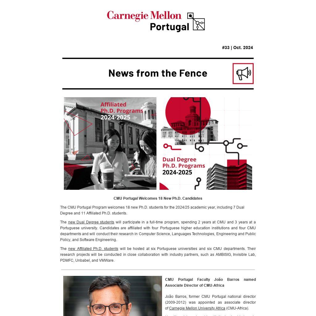 Stay in touch! Share your news with the CMU Portugal community and let us know what is happening by sending an e-mail to info@cmuportugal.org.