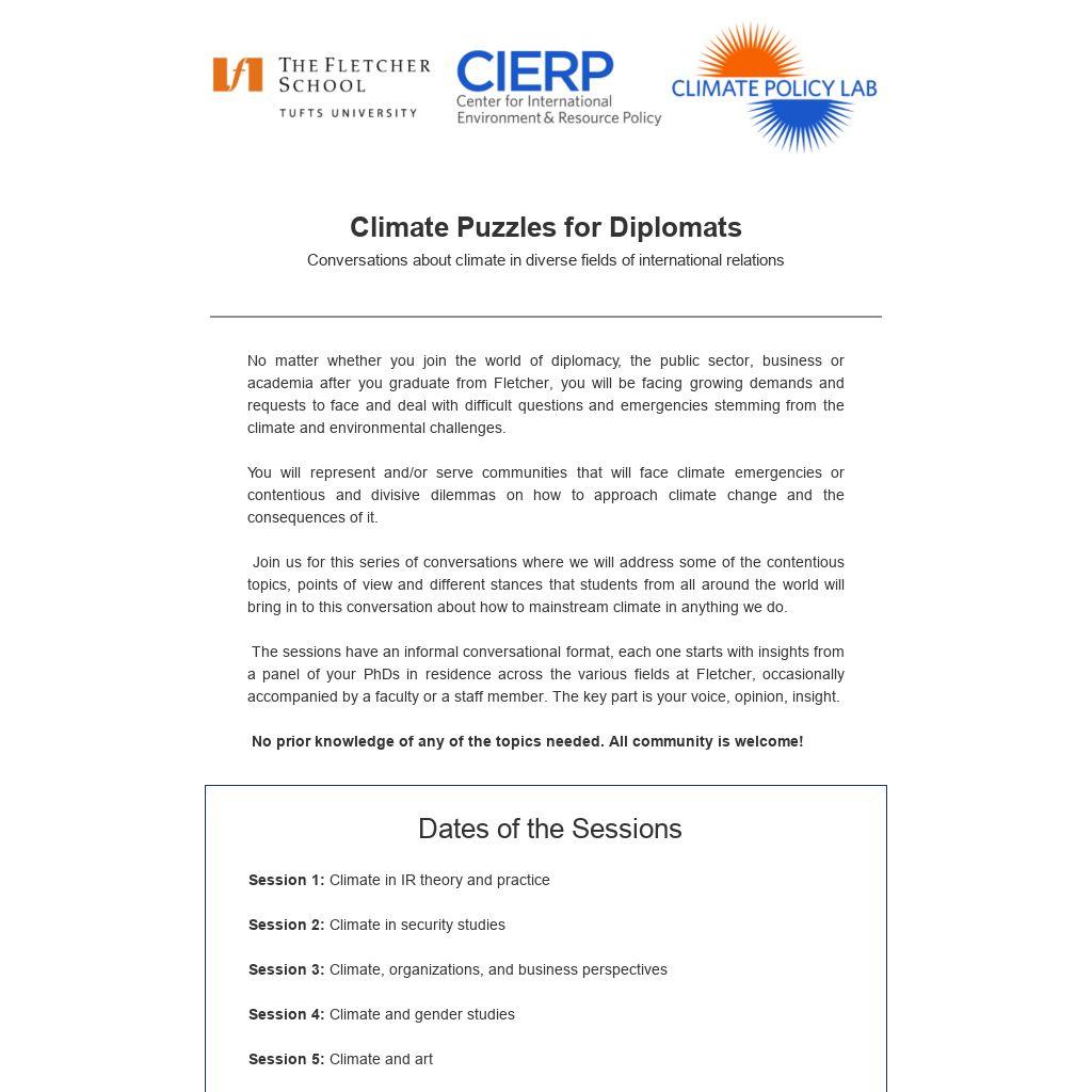 No matter whether you join the world of diplomacy, the public sector, business or academia after you graduate from Fletcher, you will be facing growing demands and requests to face and deal with difficult questions and emergencies stemming from the climate and environmental challenges.