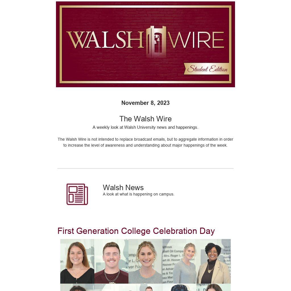 Today, across the nation, colleges and universities recognize First-Generation College Celebration Week and the students, faculty, staff, and alumni who broke down barriers and carved their own paths by pursuing a college degree. Being the first in your family to attend college takes courage and resilience, something Dr. Edna McCulloh, Associate Vice President for Academic Administration, knows first-hand [Read her story here, pages 12-14]. She is the first in her family to earn not only a bachelor’s degree but also her master's and doctorate degrees! With nearly half of the first-year students at Walsh University enrolled as first-generation students, she led a committee that spearheaded a new initiative called First Gen Cavs to recognize and support first-year students beyond the incredible resources Walsh provides all students. Read More