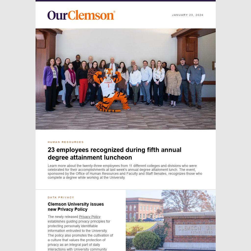 Many University faculty and staff recently received an email regarding retirement planning. Human Resources verified this is not a legitimate email from the SC Benefits program, and Clemson employees are encouraged to practice extreme caution about sharing personal or financial information.