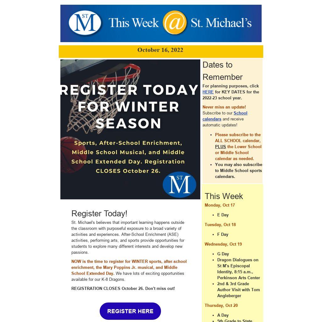 Current and past issues of "This Week at St. Michael's" are archived on our website under "News and Events," as well as under "Community."