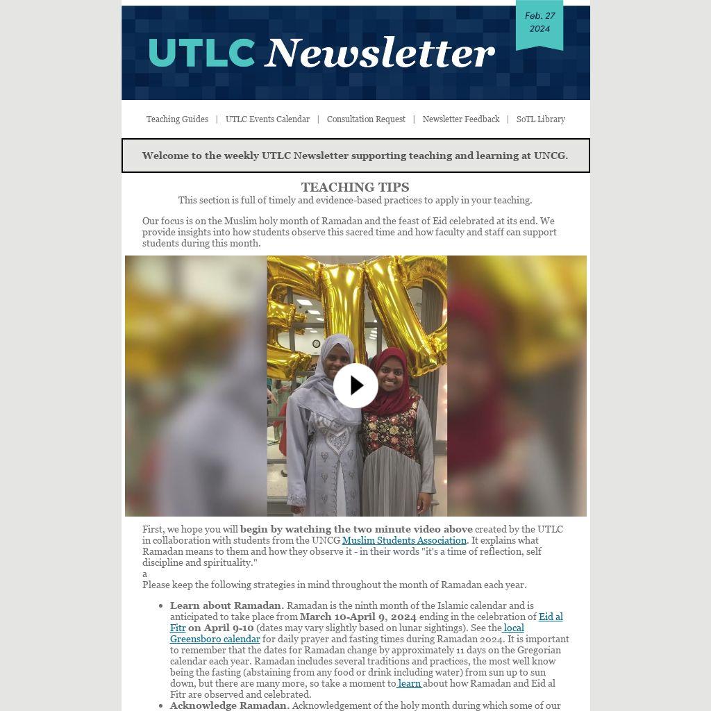 Welcome to the weekly UTLC Newsletter supporting teaching and learning at UNCG.