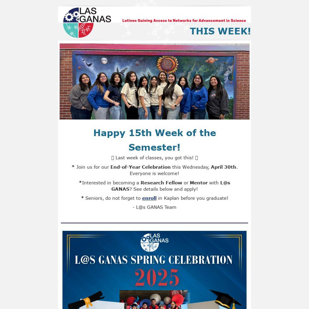 Happy 15th Week of the Semester!