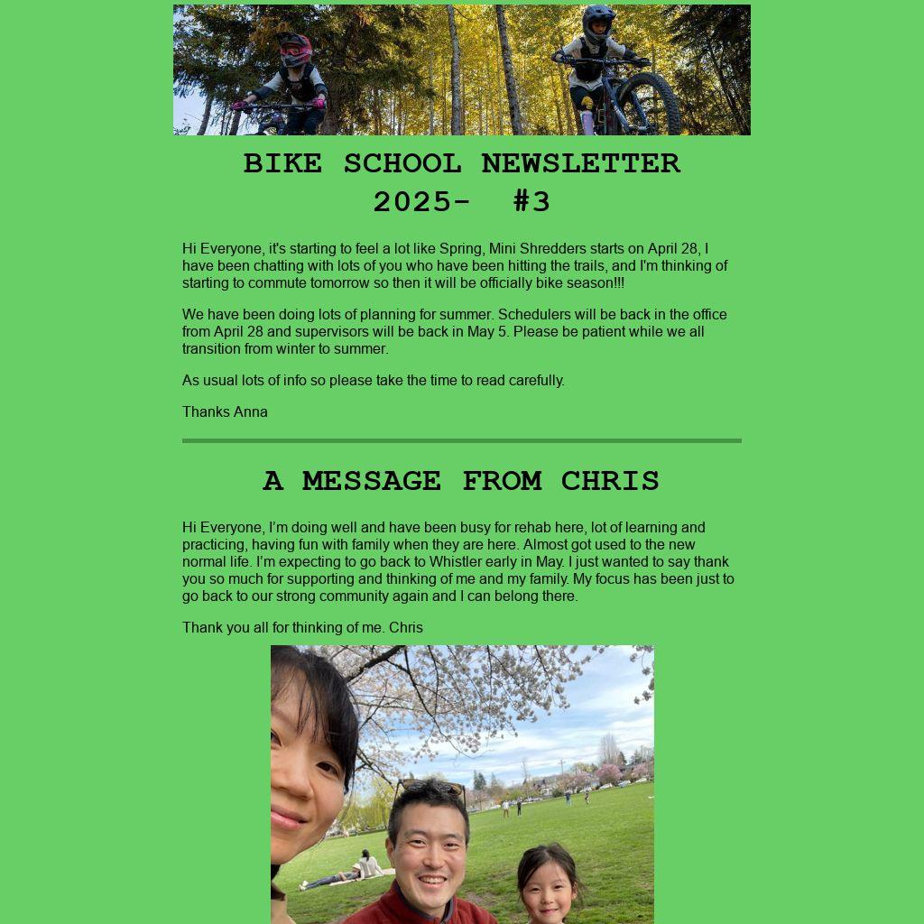 BIKE SCHOOL NEWSLETTER 2025- #3 |