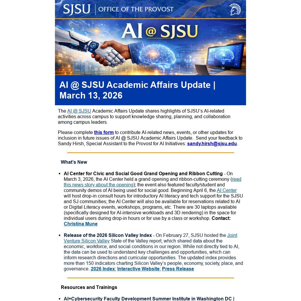 AI @ SJSU Academic Affairs Update | March 13, 2026 |