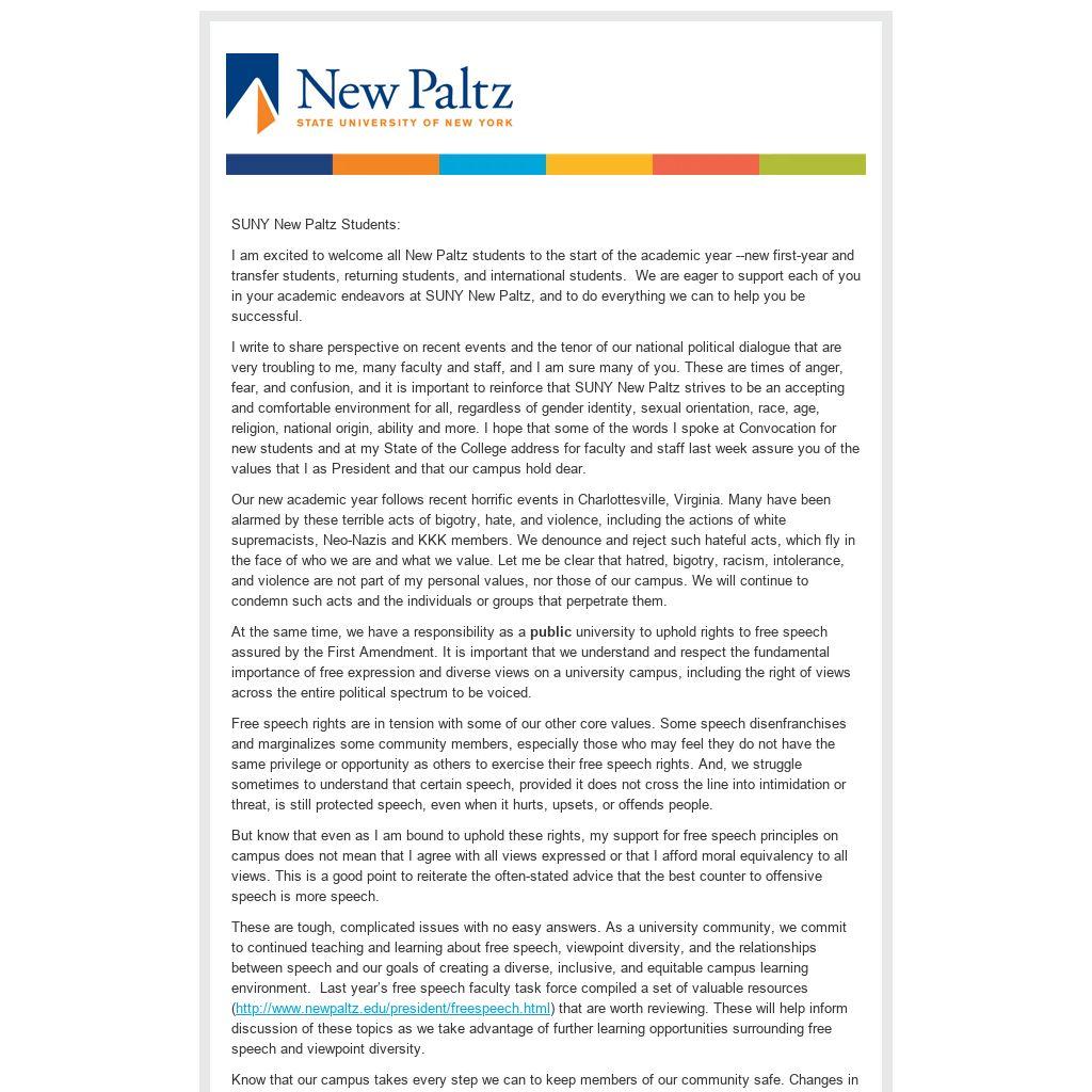 http://www.newpaltz.edu/president/freespeech.html) that are worth reviewing. These will help inform discussion of these topics as we take advantage of further learning opportunities surrounding free speech and viewpoint diversity.