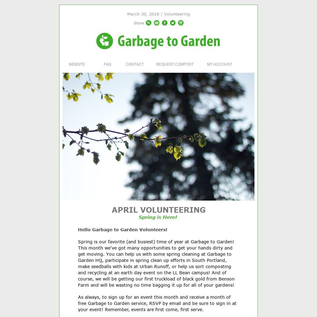 Also, please help us welcome Jackie Spencer, our new Volunteer & Outreach Coordinator. Jackie will be the go-to person for all things related to Garbage to Garden's volunteer program and will be the one you correspond with through volunteer@garbagetogarden.org.