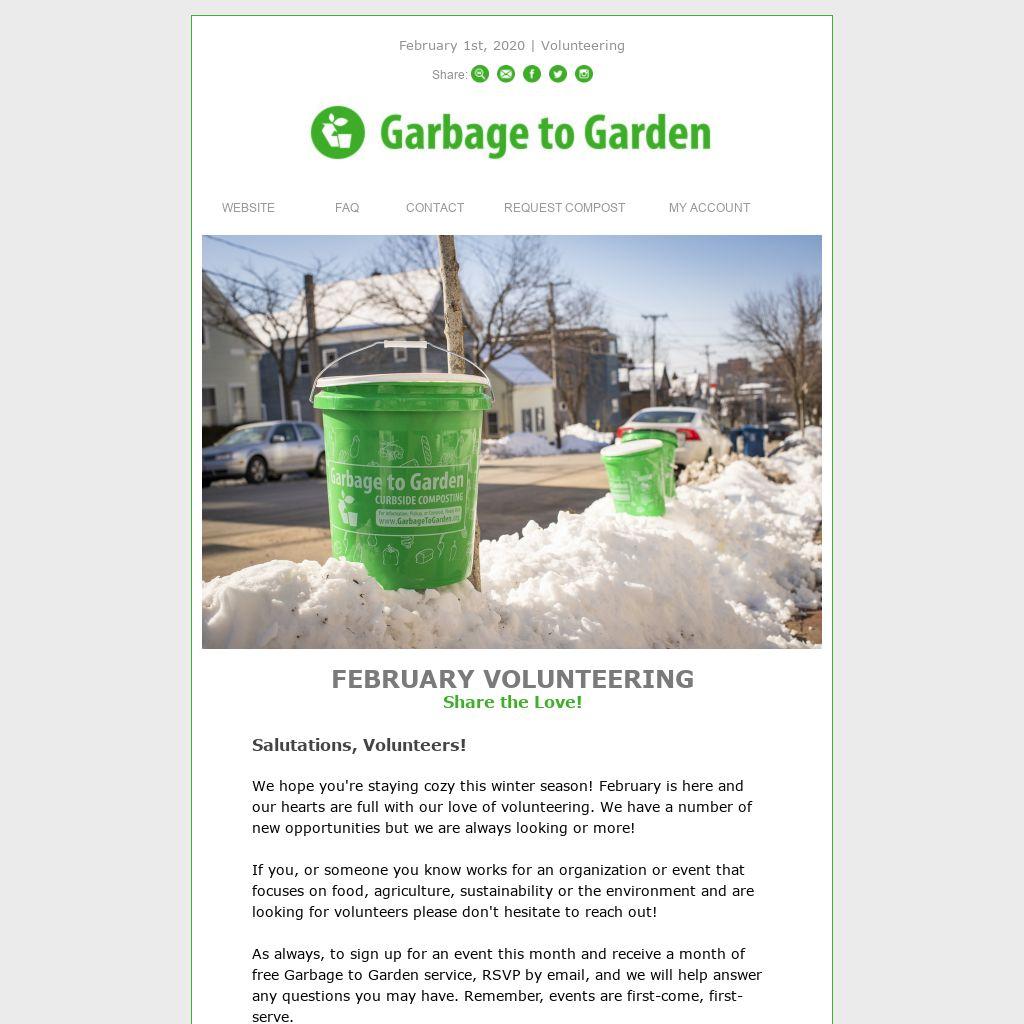 As always, to sign up for an event this month and receive a month of free Garbage to Garden service, RSVP by email, and we will help answer any questions you may have. Remember, events are first-come, first-serve.