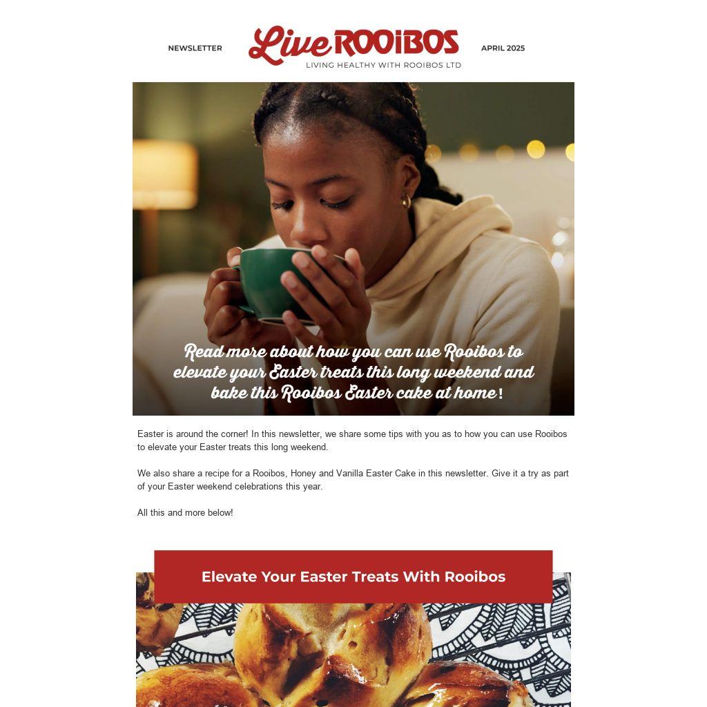 Easter is around the corner! In this newsletter, we share some tips with you as to how you can use Rooibos to elevate your Easter treats this long weekend.