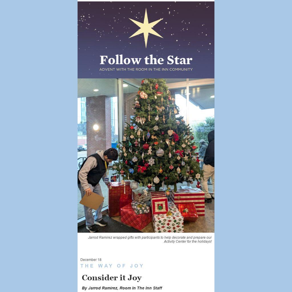 I cannot imagine the strength it takes for those in our community to consider their trials as joy, and yet it seems more often than not that the members of our Room In The Inn community are some of the most joy filled people that I know. And I am beginning to realize that when I think of joy, it is their faces that I see.