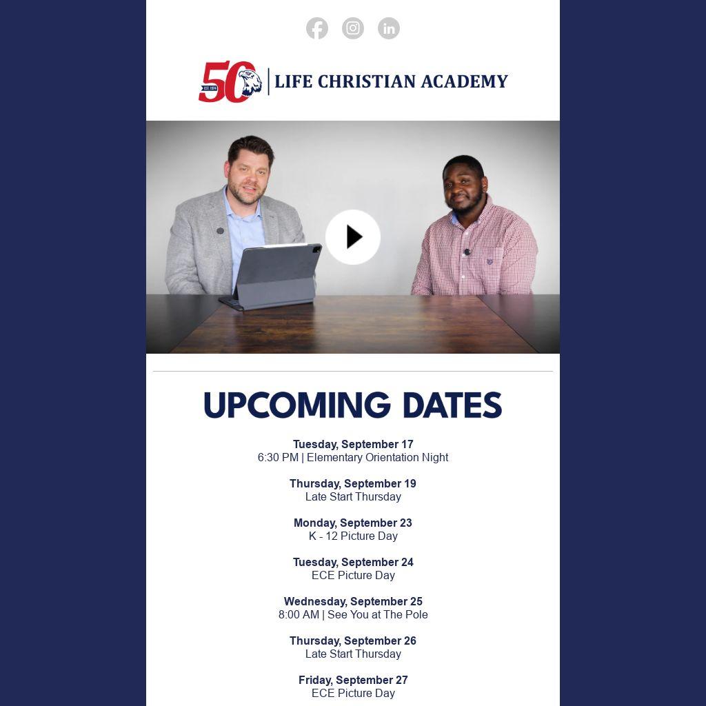 Finally, save the date for our LCA Dreams Auction on Saturday, March 22, where exciting auction items and celebrations await. Let's commemorate five decades of faith, excellence, and community!