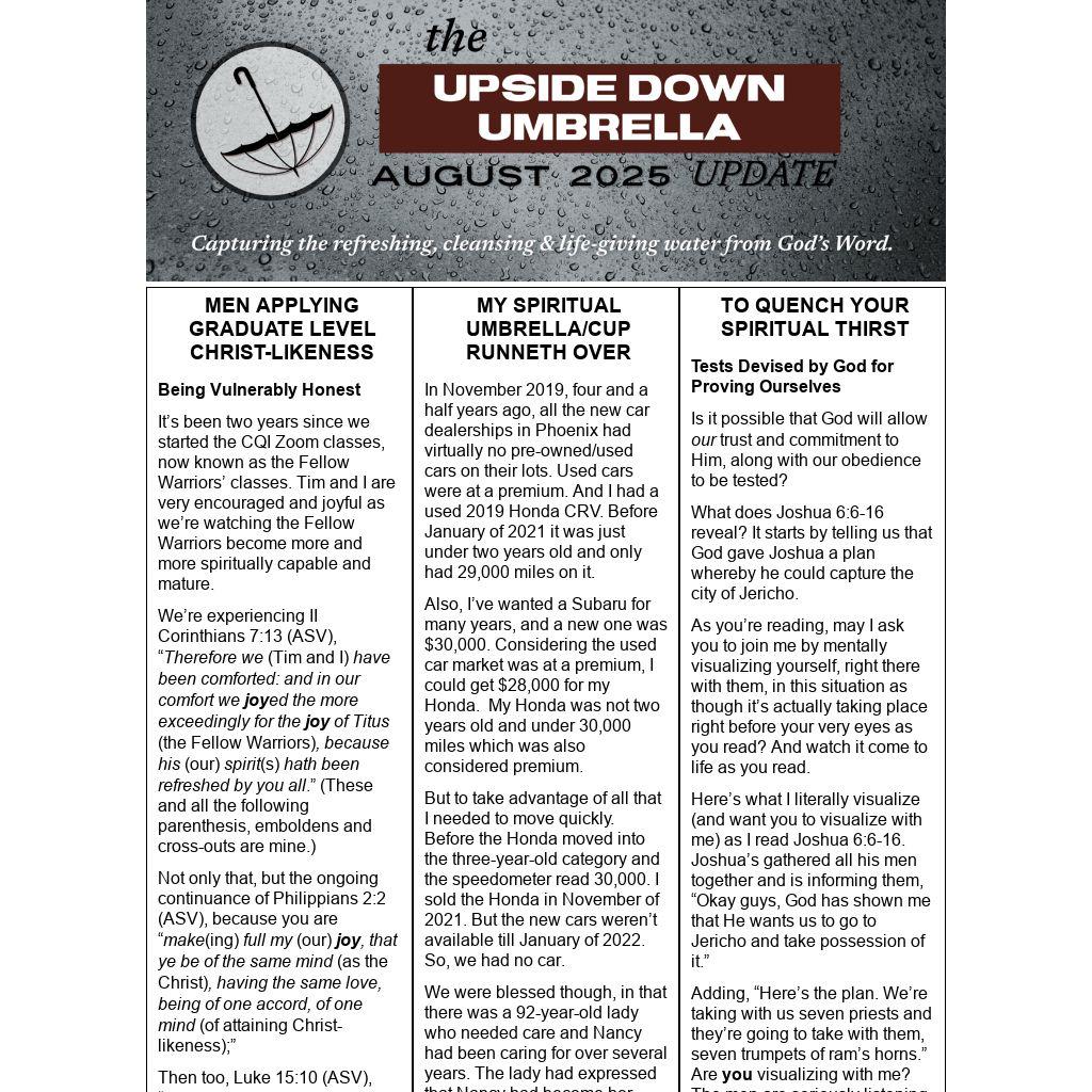 It’s been two years since we started the CQI Zoom classes, now known as the Fellow Warriors’ classes. Tim and I are very encouraged and joyful as we’re watching the Fellow Warriors become more and more spiritually capable and mature.