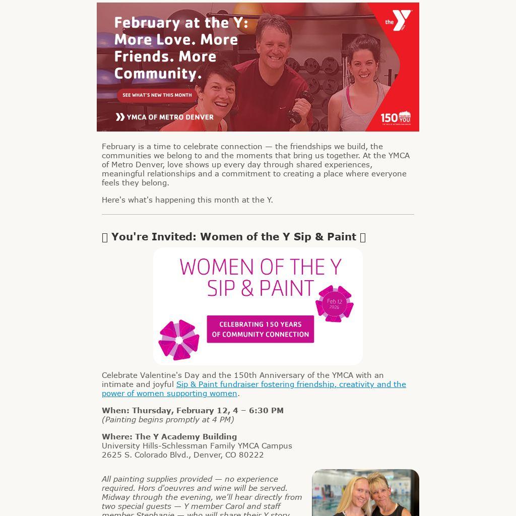 February is a time to celebrate connection — the friendships we build, the communities we belong to and the moments that bring us together. At the YMCA of Metro Denver, love shows up every day through shared experiences, meaningful relationships and a commitment to creating a place where everyone feels they belong.