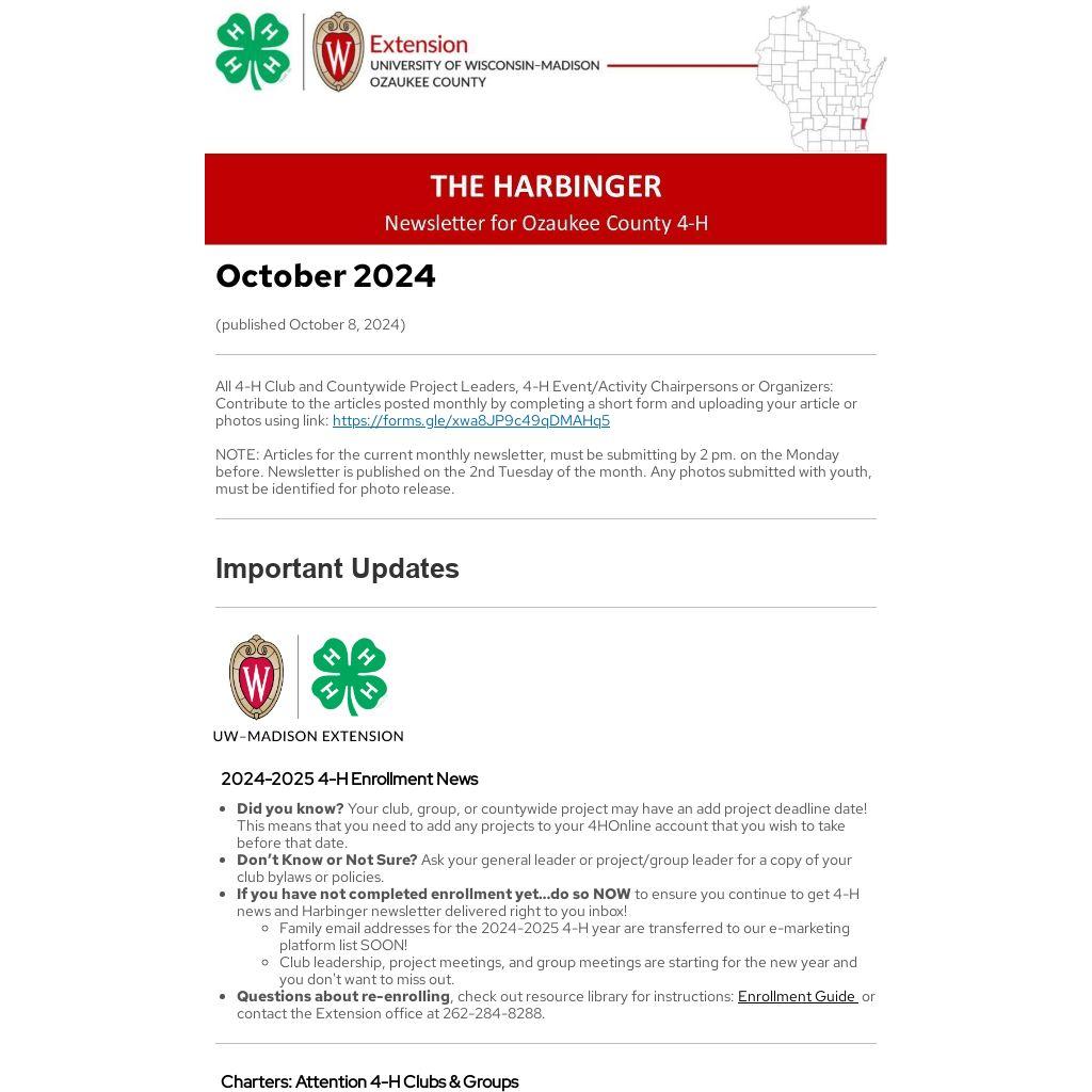 - If you have not completed enrollment yet…do so NOW to ensure you continue to get 4-H news and Harbinger newsletter delivered right to you inbox!