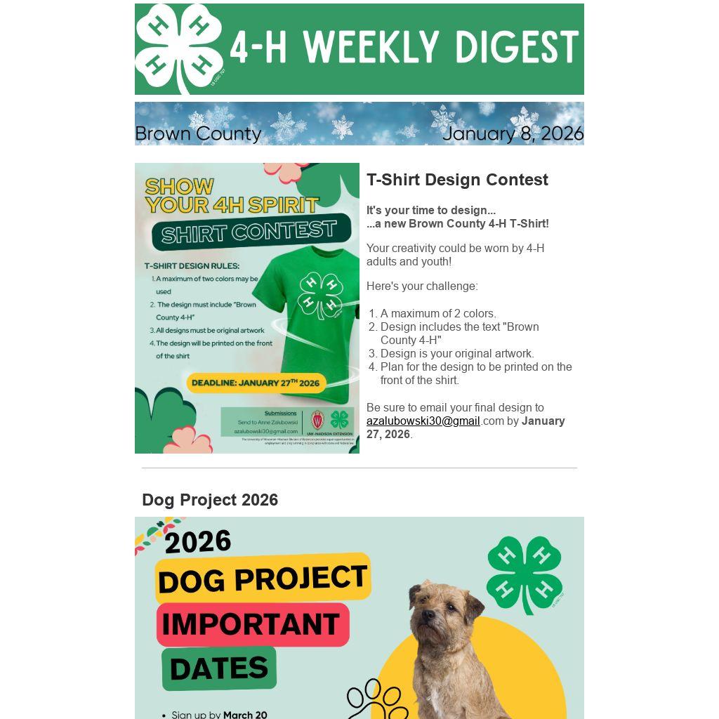 Any questions or concerns feel free to contact Angela Duckart, Brown County 4-H Dog Project Leader, at 920-680-9001.