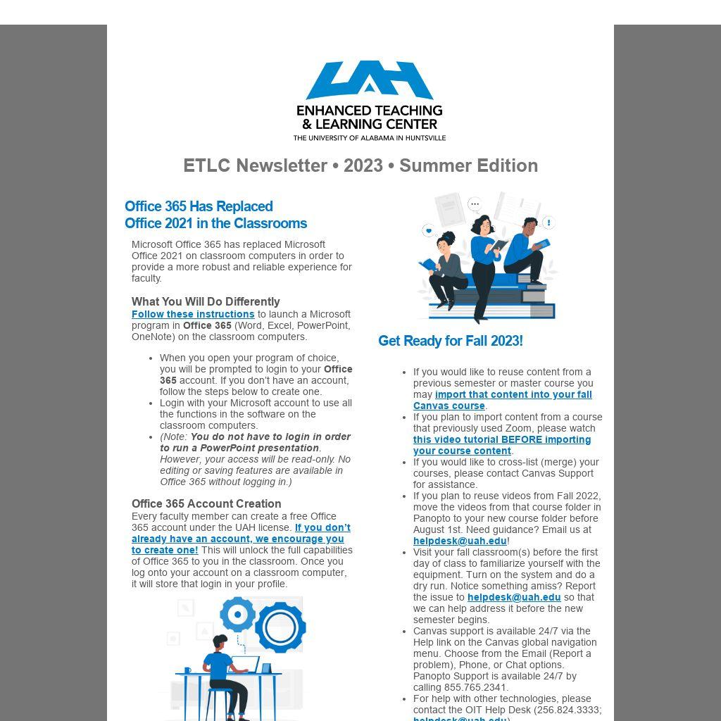 If you plan to reuse videos from Fall 2022, move the videos from that course folder in Panopto to your new course folder before August 1st. Need guidance? Email us at helpdesk@uah.edu!