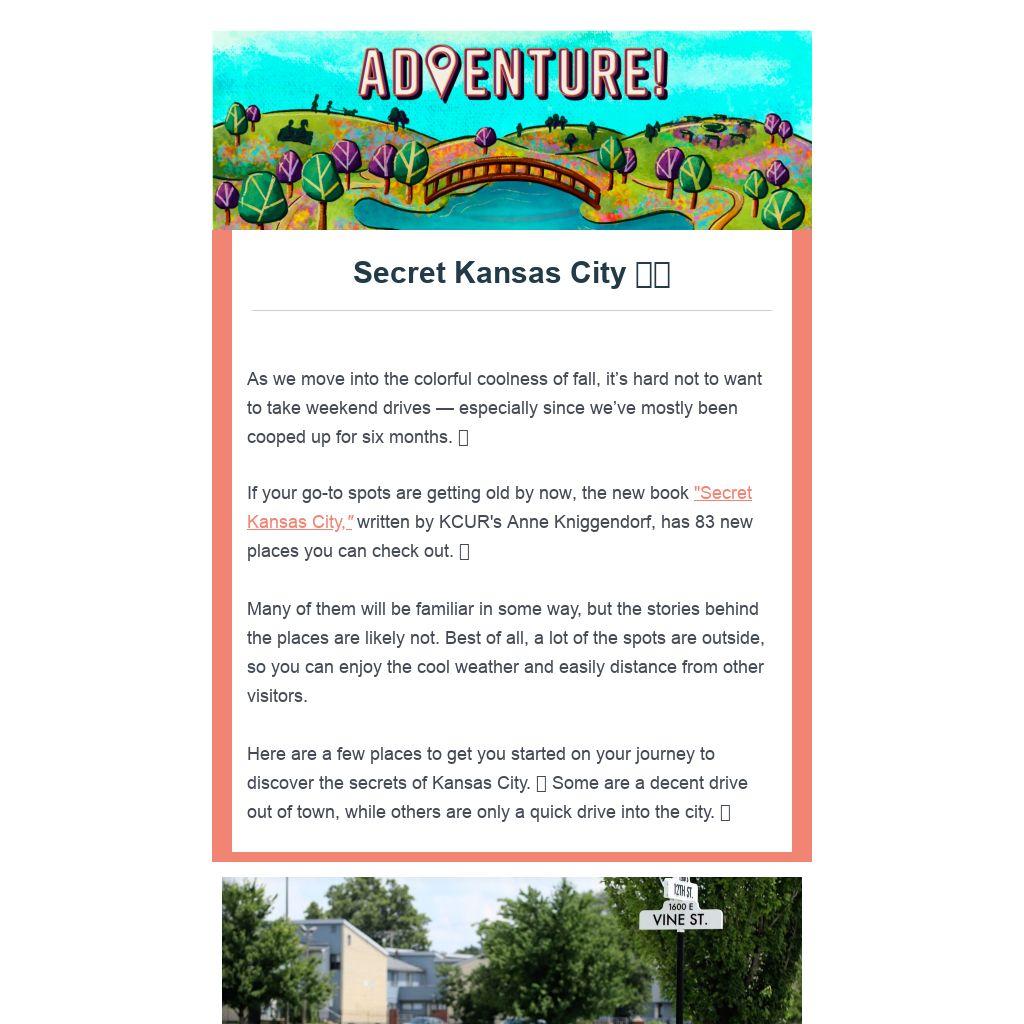 If your go-to spots are getting old by now, the new book "Secret Kansas City," written by KCUR's Anne Kniggendorf, has 83 new places you can check out. 🆕