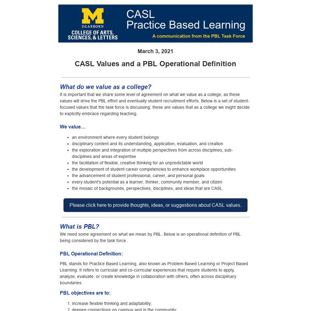 We need some agreement on what we mean by PBL. Below is an operational definition of PBL being considered by the task force.