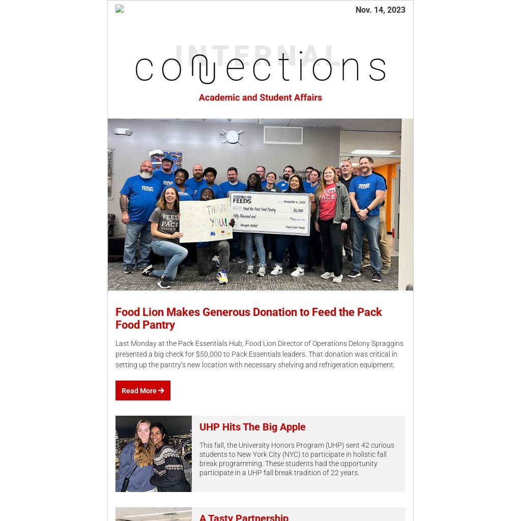 - The third annual Pantry Bowl between NC State and UNC-Chapel Hill is set for the week of Nov. 19-26. This friendly competition, won by NC State last year, will see which university can rally the most gifts to its campus food pantry.