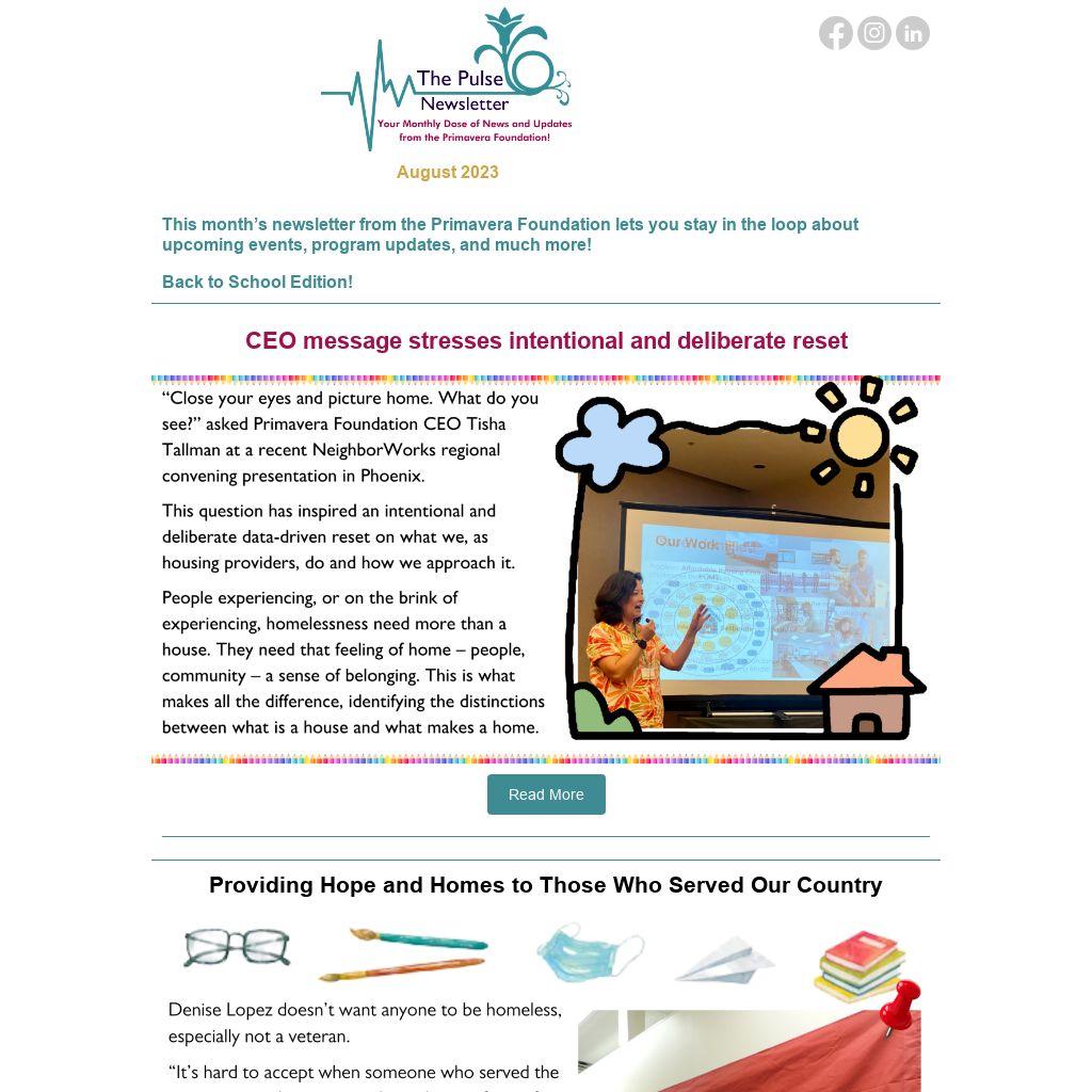 This month’s newsletter from the Primavera Foundation lets you stay in the loop about upcoming events, program updates, and much more!
