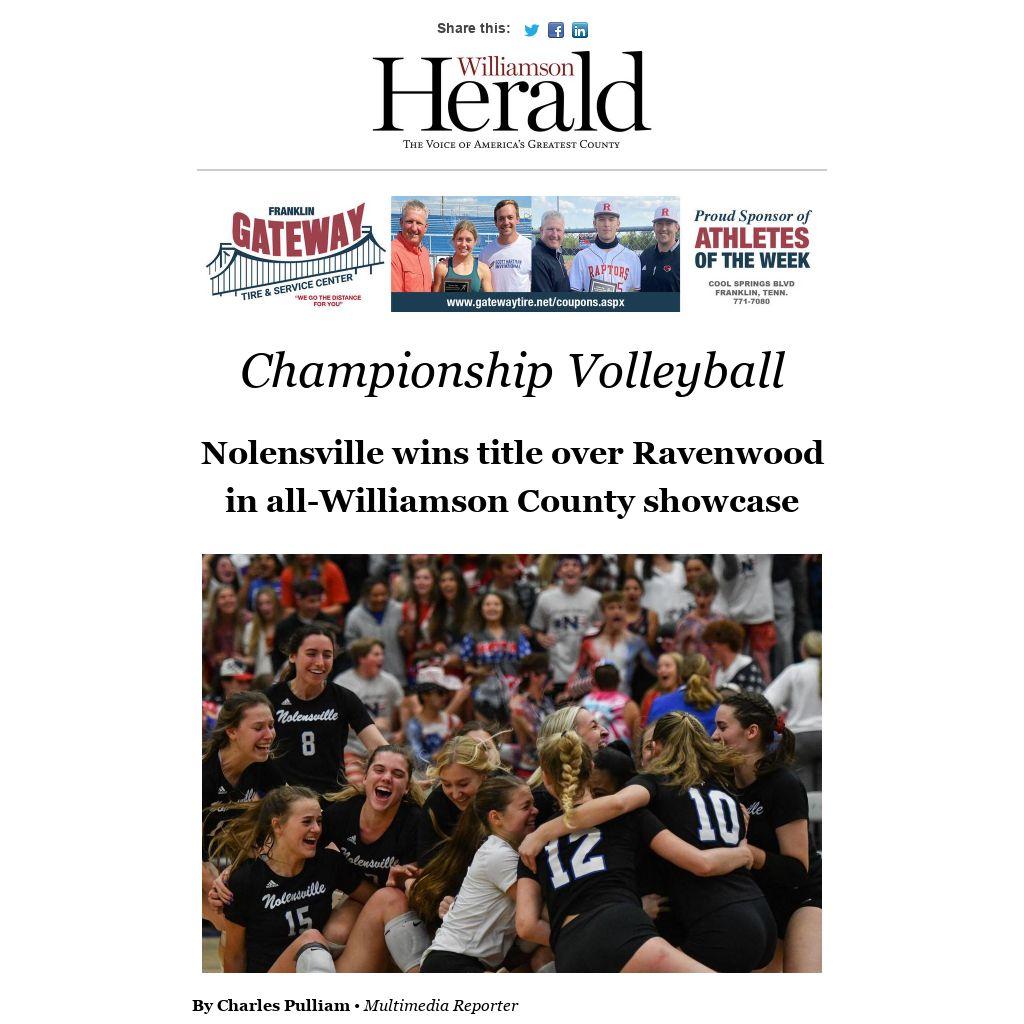 Nolensville raced to a 25-14, 25-19, 25-21 championship win over budding Williamson County rival Ravenwood Friday at Siegel High School, adding another trophy to the back-to-back Class AA ones from 2020 and 2019.