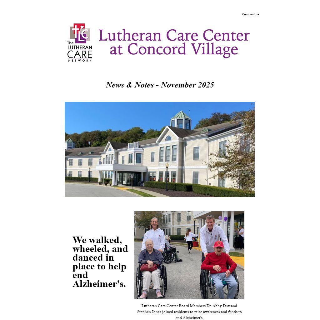 Lutheran Care Center Board Members Dr. Abby Dux and Stephen Jones joined residents to raise awareness and funds to end Alzheimer's.