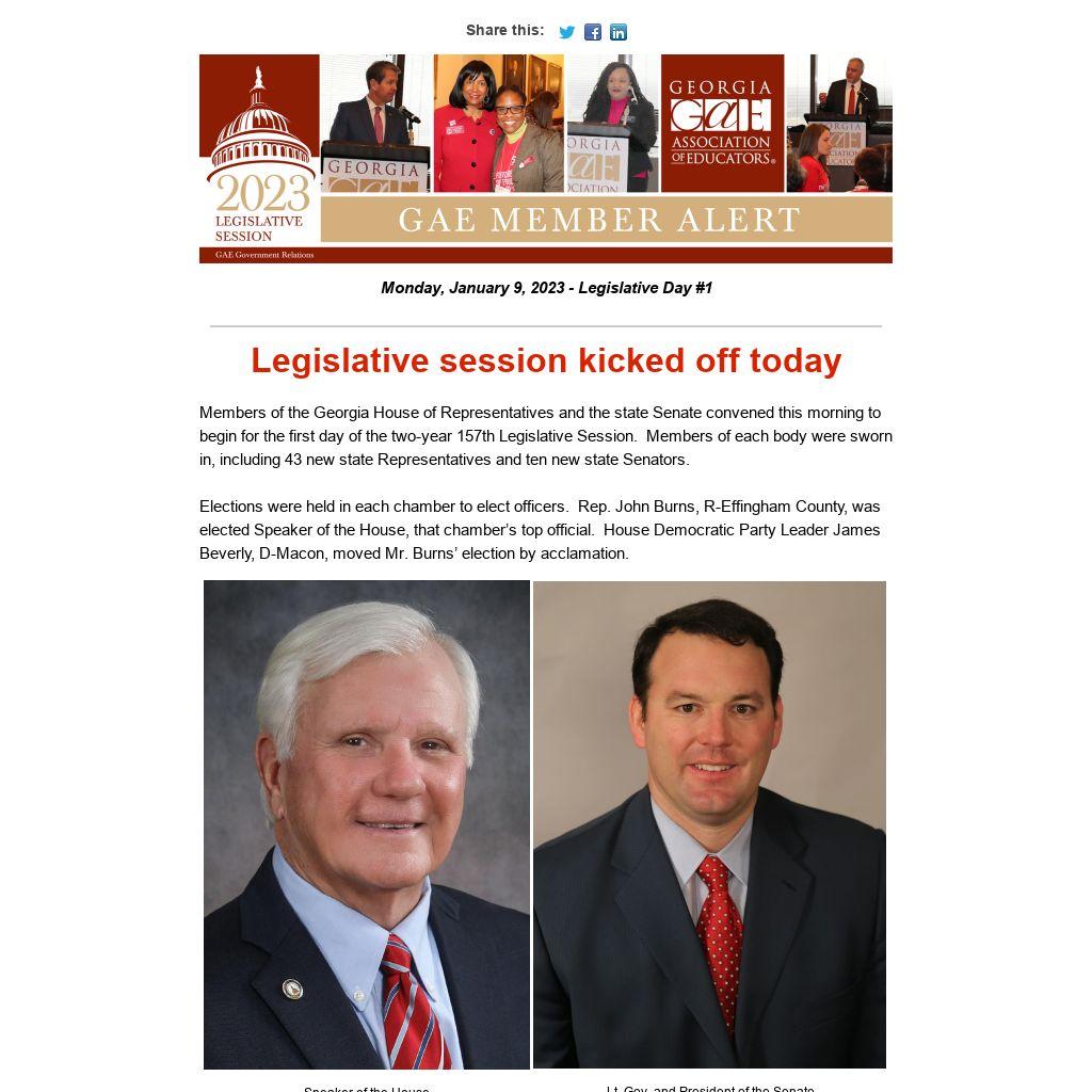 Members of the Georgia House of Representatives and the state Senate convened this morning to begin for the first day of the two-year 157th Legislative Session. Members of each body were sworn in, including 43 new state Representatives and ten new state Senators.