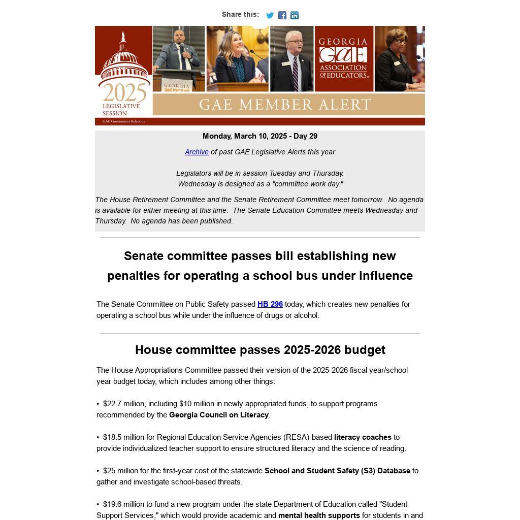 Archive of past GAE Legislative Alerts this year