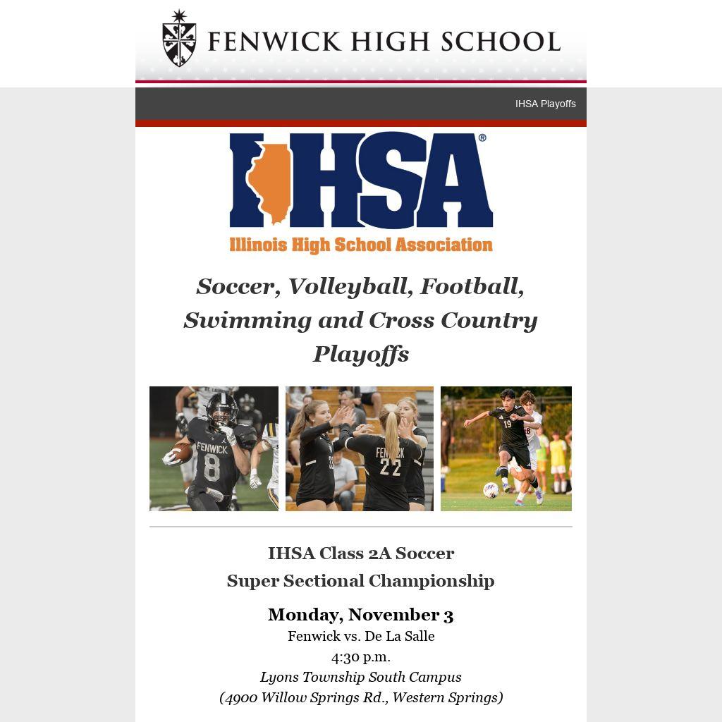 Soccer, Volleyball, Football, Swimming and Cross Country Playoffs
