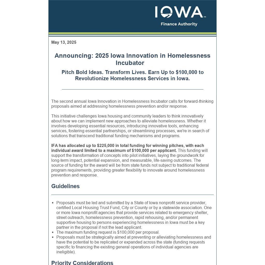 Announcing: 2025 Iowa Innovation in Homelessness Incubator