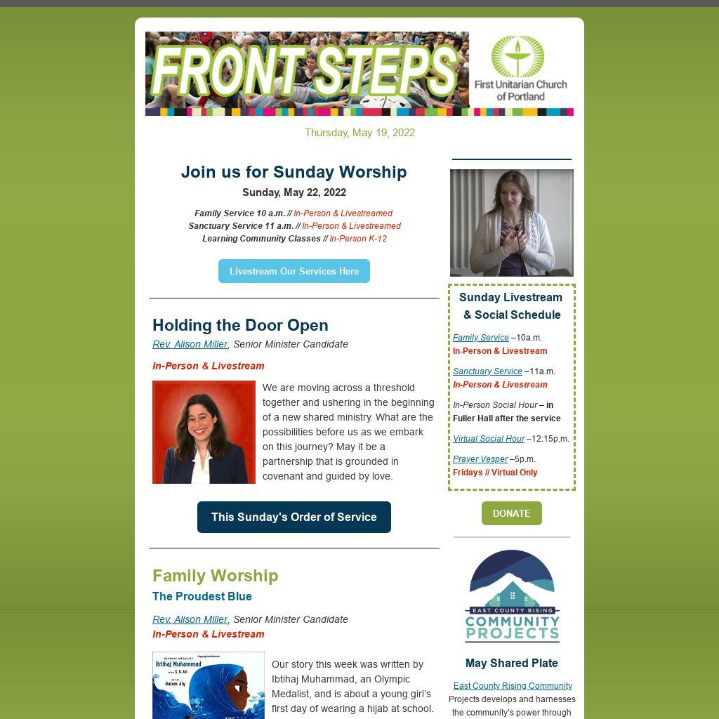 Have a Submission for E-News?If you have a church-related submission you would like published in our weekly Front Steps (E-News), please submit it here with subject line “For E-News.”