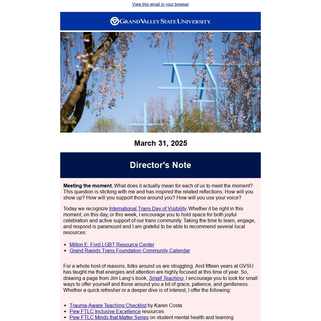 Connect with us to stay updated on faculty development opportunities, teaching resources, and community highlights. Follow, like, and engage—we’d love to hear from you! Want us to highlight something specific? Let us know at PewFTLC@gvsu.edu or send us a message right on LinkedIn.