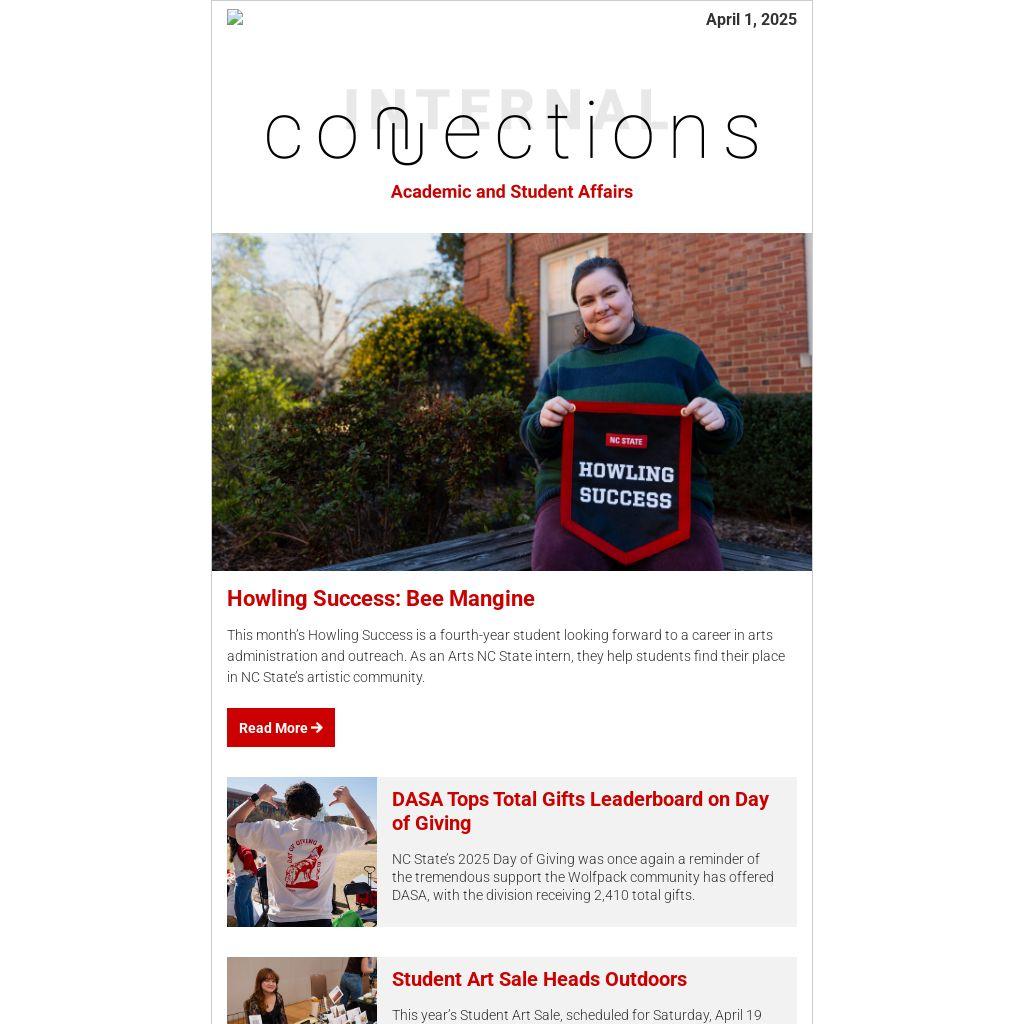 This month’s Howling Success is a fourth-year student looking forward to a career in arts administration and outreach. As an Arts NC State intern, they help students find their place in NC State’s artistic community.