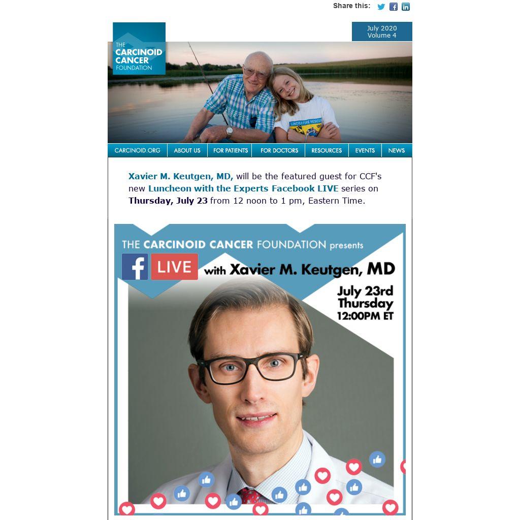 July 30, Catherine Bouvier, CEO, Neuroendocrine Cancer UK; President, International Neuroendocrine Cancer Alliance; previously a NET nurse specialist
