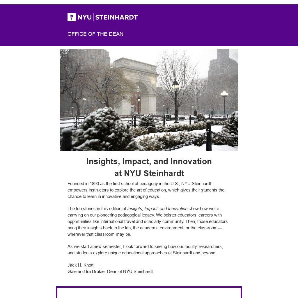 As we start a new semester, I look forward to seeing how our faculty, researchers, and students explore unique educational approaches at Steinhardt and beyond.