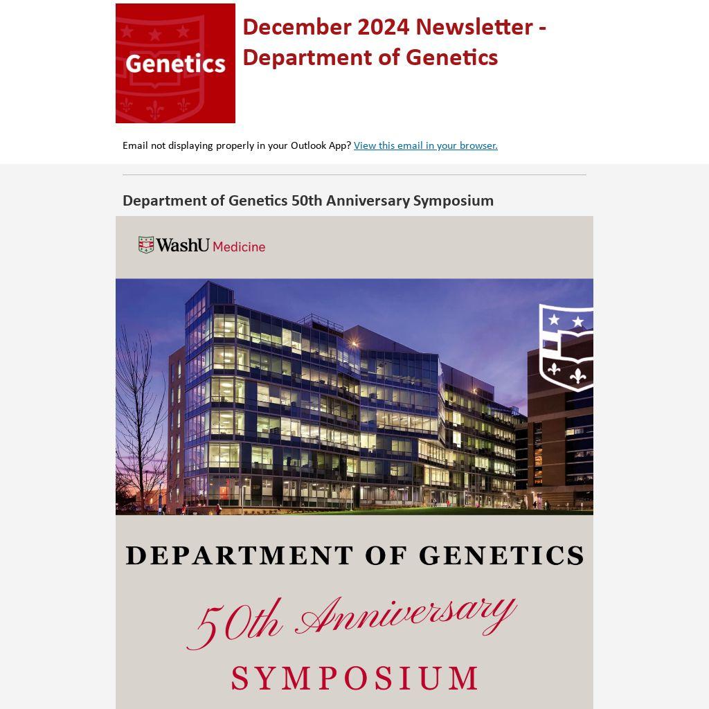 The Department of Genetics is pleased to announce its 50th Anniversary Symposium to be held on April 24th, 2025. Join us as we celebrate the amazing history, people and scientific community here in the WashU Medicine Department of Genetics.