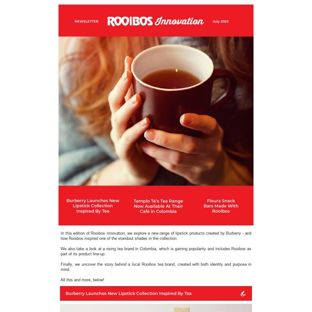 In this edition of Rooibos Innovation, we explore a new range of lipstick products created by Burberry - and how Rooibos inspired one of the standout shades in the collection.