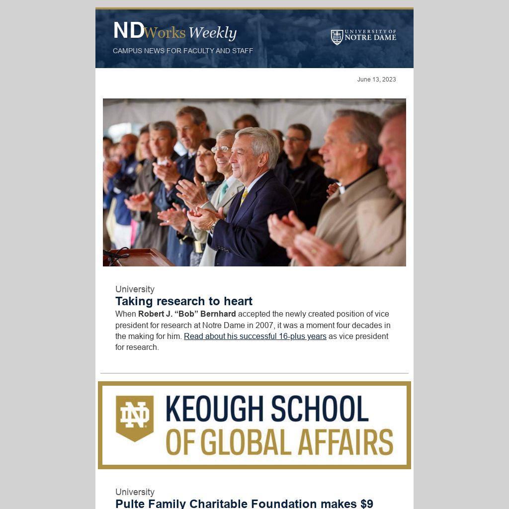 Robert J. “Bob” Bernhard accepted the newly created position of vice president for research at Notre Dame in 2007, it was a moment four decades in the making for him.