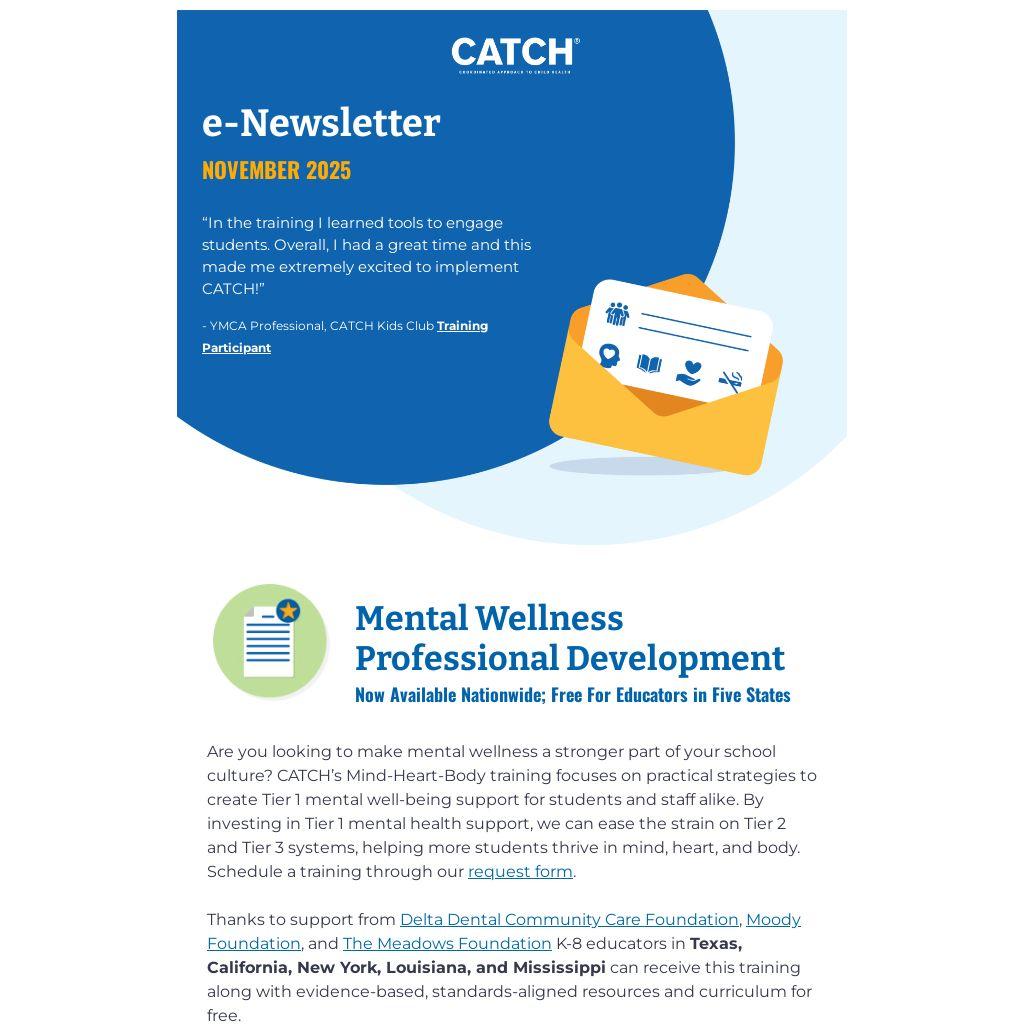 - Nourish your mind, heart, and body this season by joining our CATCH Creative Challenge on social media! Click the image below to get started, and don’t forget to share your creation in the Educators’ Club to inspire others.