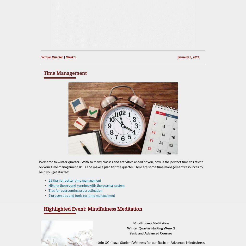 Welcome to winter quarter! With so many classes and activities ahead of you, now is the perfect time to reflect on your time management skills and make a plan for the quarter. Here are some time management resources to help you get started: