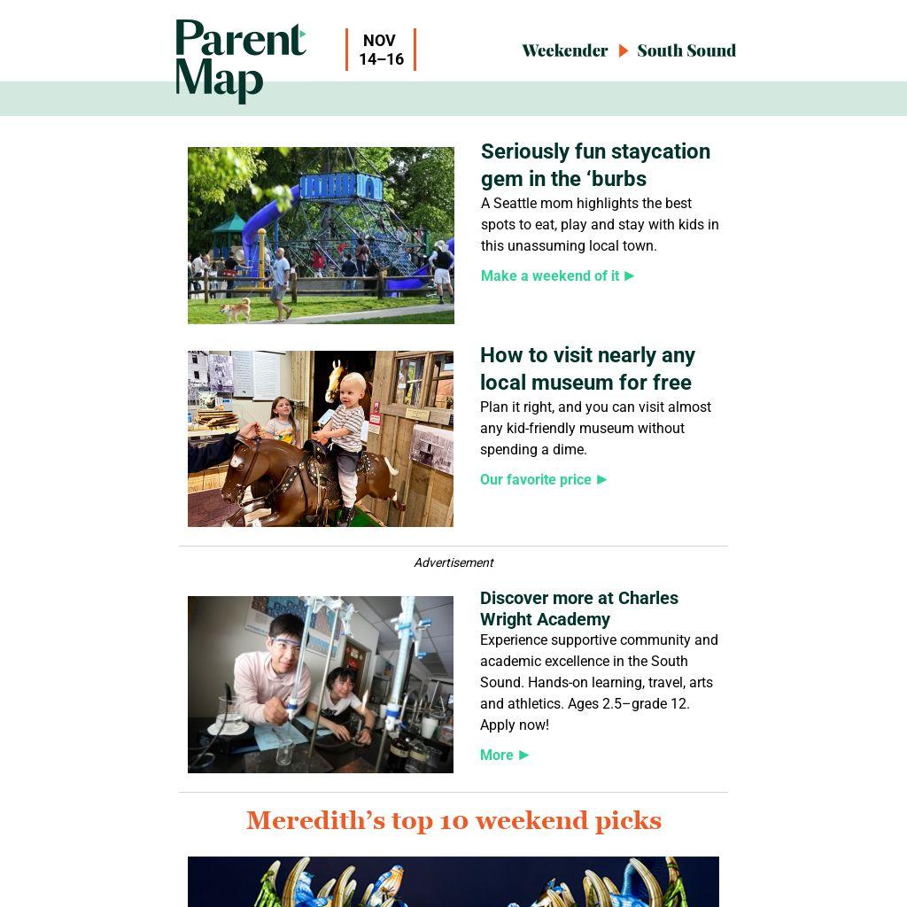 Can't buy our love! ParentMap never sells our good reviews or recommendations for events. Our opinions aren't for sale, and we think that matters. Find more great events on our Family Fun Calendar. To submit an event, fill out our online form.
