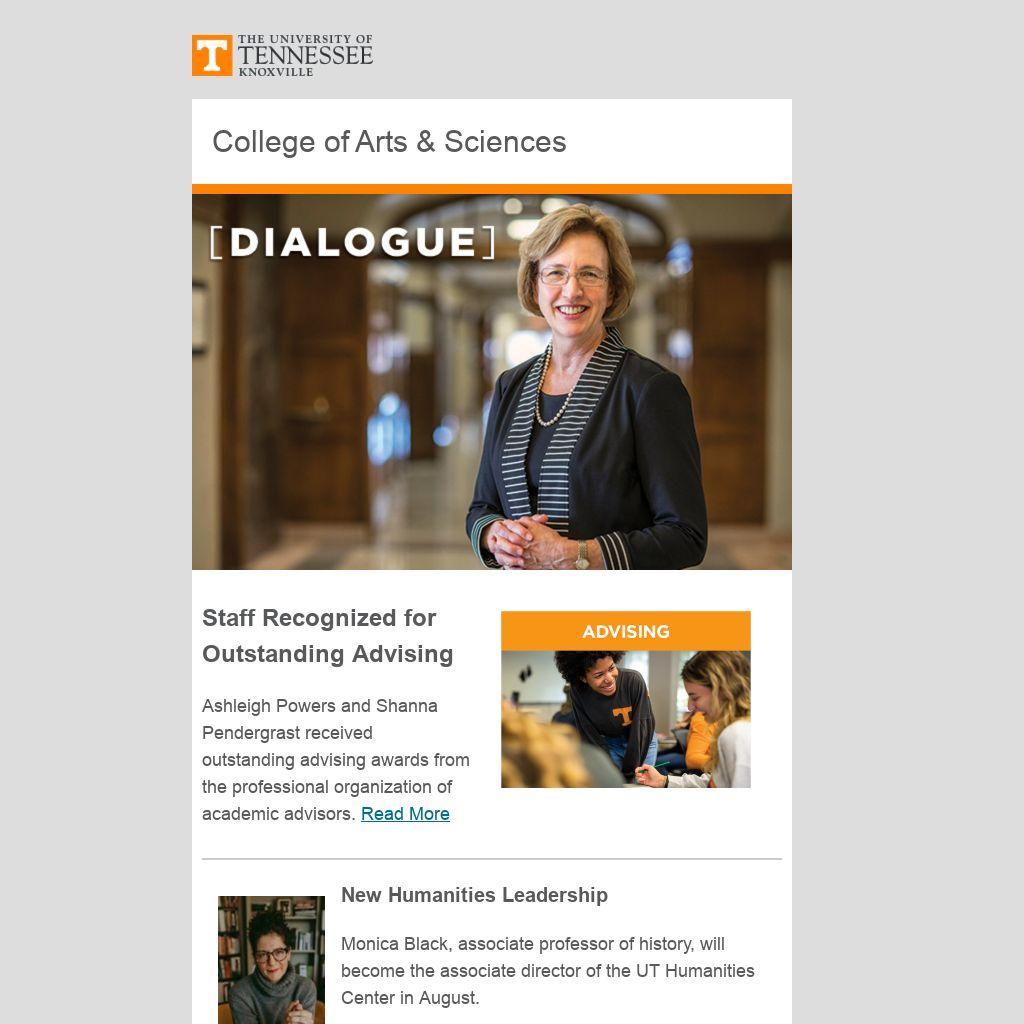 College of Arts & Sciences Office of the Dean 312 Ayres Hall 1403 Circle Drive Knoxville, TN 37996-1330 Phone: 865-974-5332 Website: artsci.utk.edu Email:artscidean@utk.edu